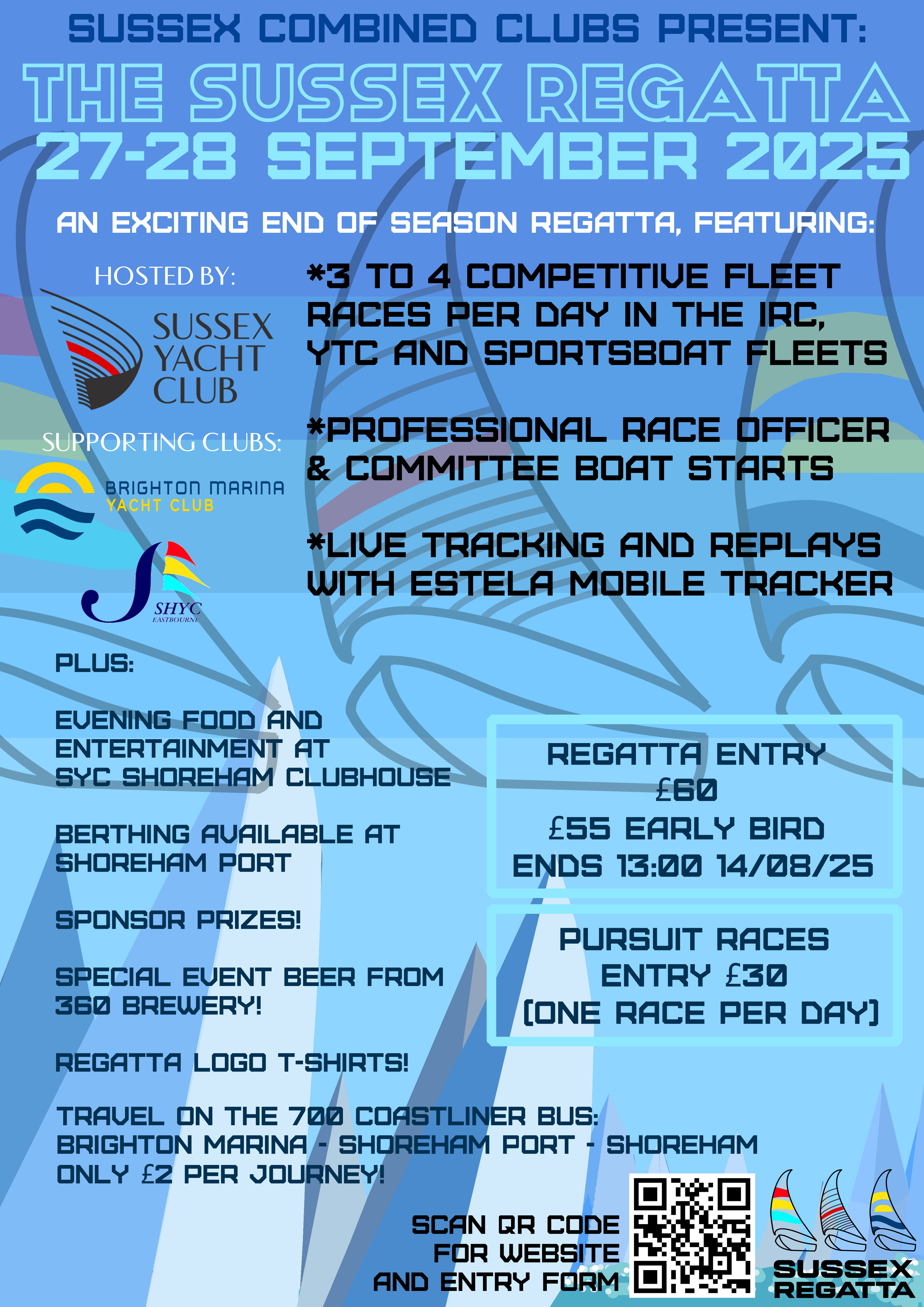STOP PRESS: Amendment to Sailing Instructions 4 26/09/2025 14:45 Amendment 4 to the Sailing Instructions of the 2025 Regatta has been published. It can be viewed or downloaded from the Documents page. eStela Setup and Codes 25/09/2025 14:59 We will be tracking the races using the eStela race tracking system. The races will be broadcast live in the clubhouse and via a live link. We will also be replaying the races for analysis in the clubhouse in the evenings.